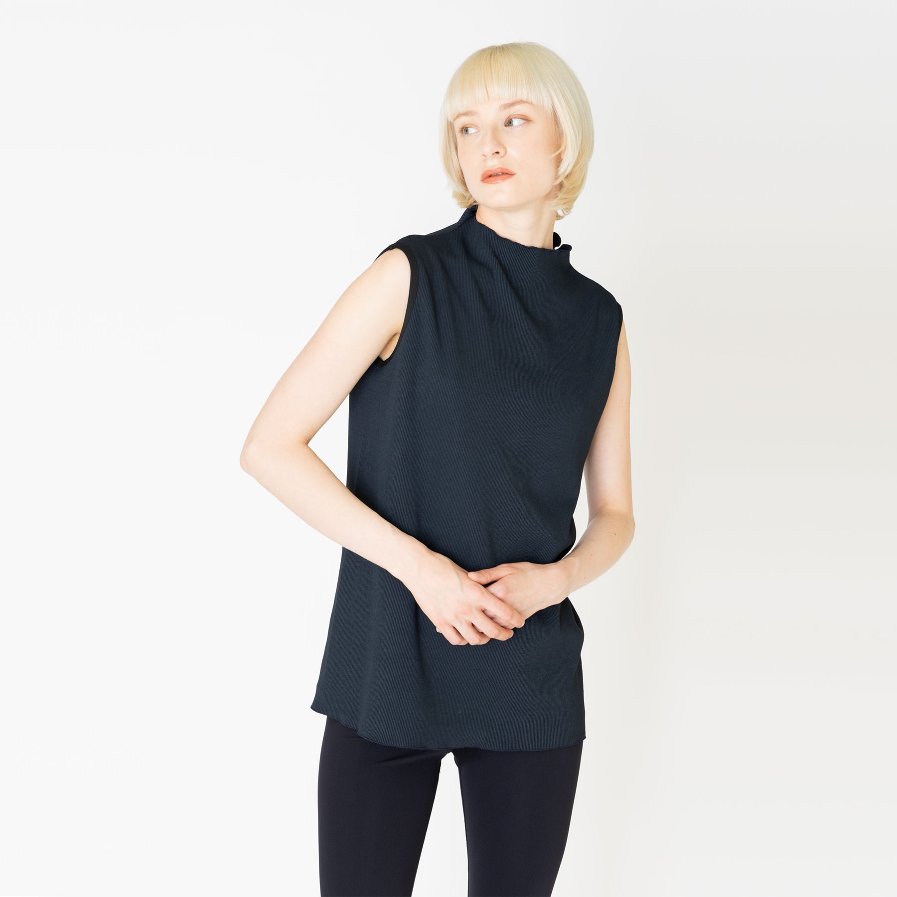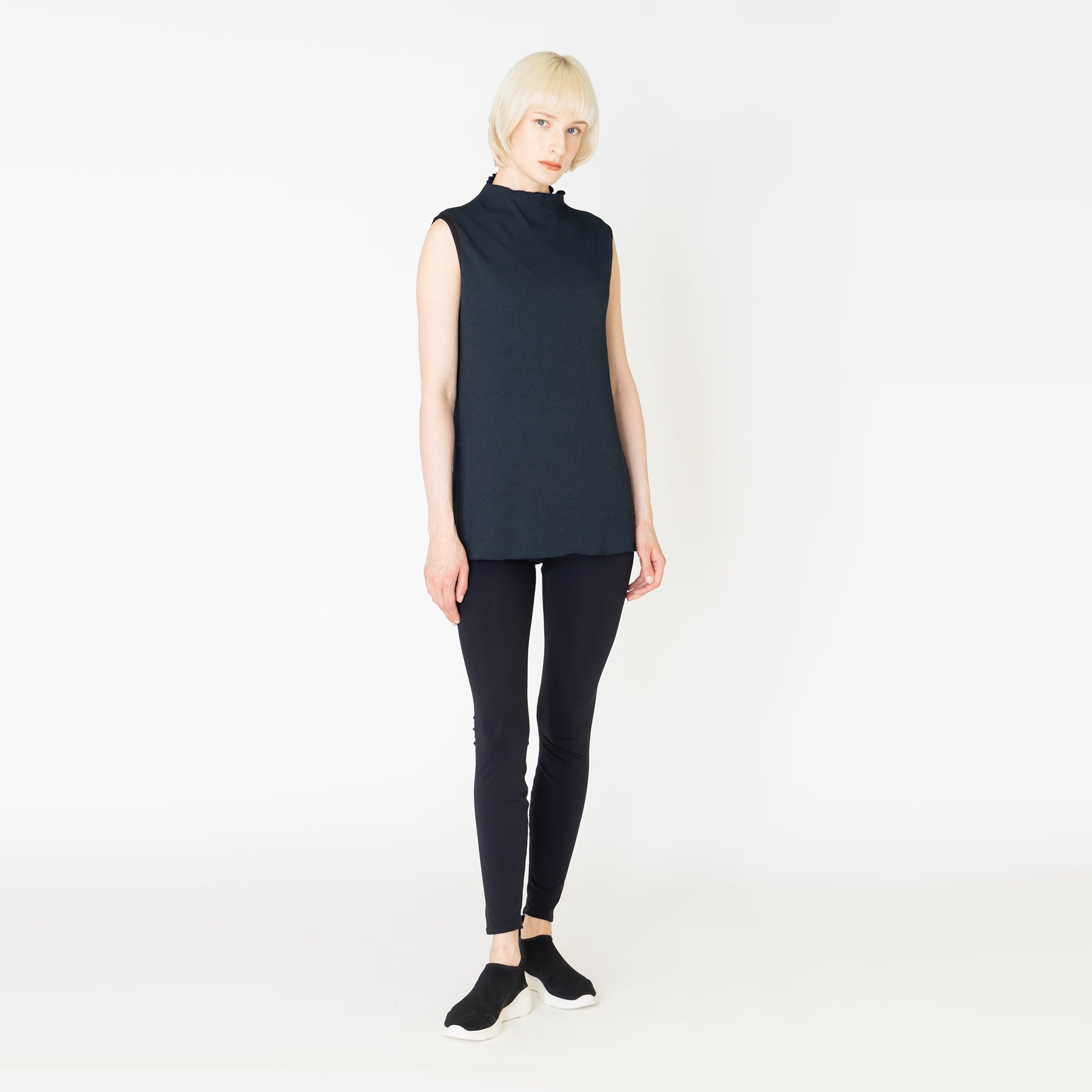 スパンテレコのシンプルなプルオーバー。1枚で着ても重ね着にも重宝しそうです。・モデル着用のレギンスはこちら日本製ブラックポリエステル 99%・ポリウレタン 1%フリーサイズ・・・肩幅 38cm, 身幅 46cm, 身丈 68cm※上記寸法は平置きになります。製品の実寸法は素材の特性などにより1~2cm程度の誤差がある場合がございますので予めご了承ください。