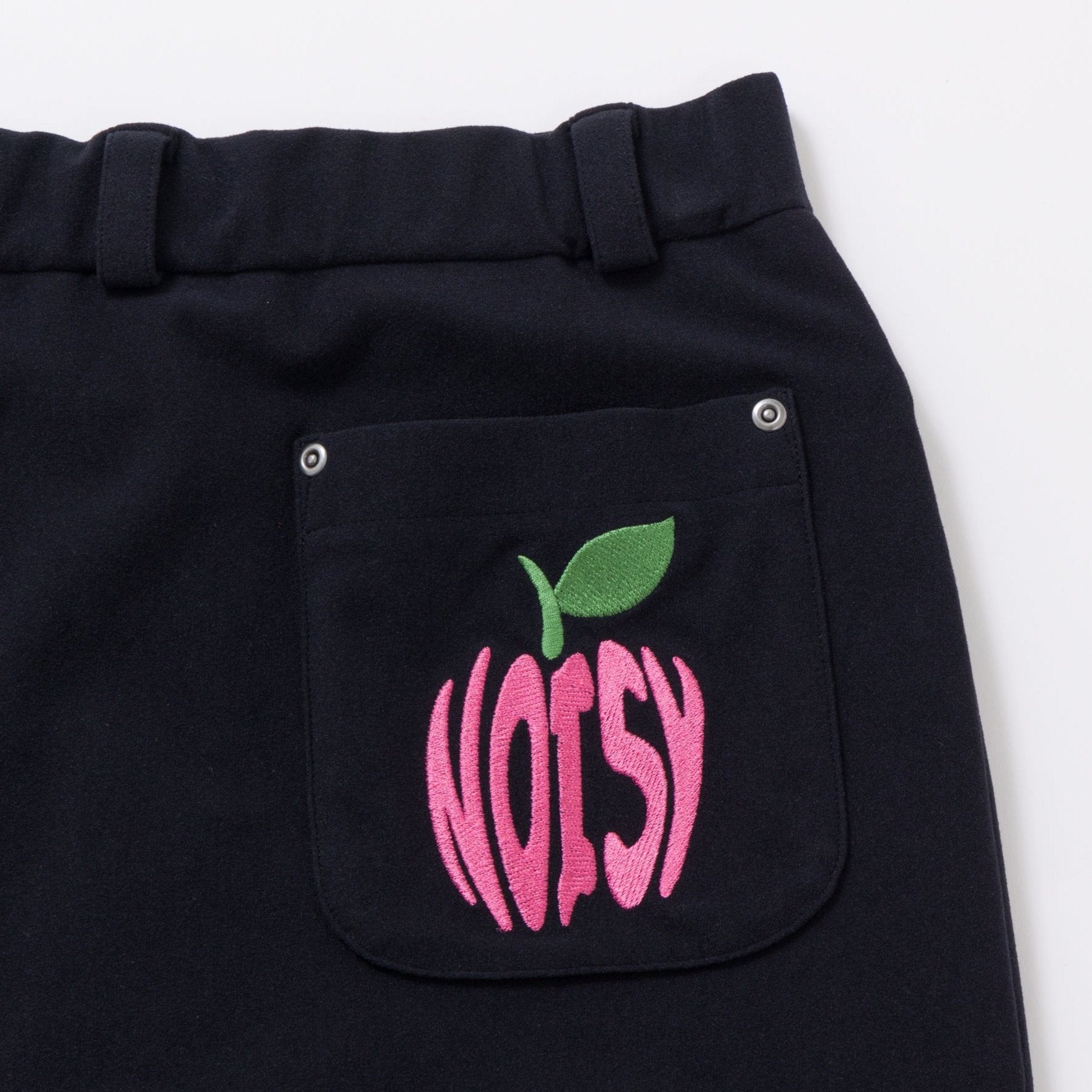 ポケットのリンゴの刺繍がキュートです。