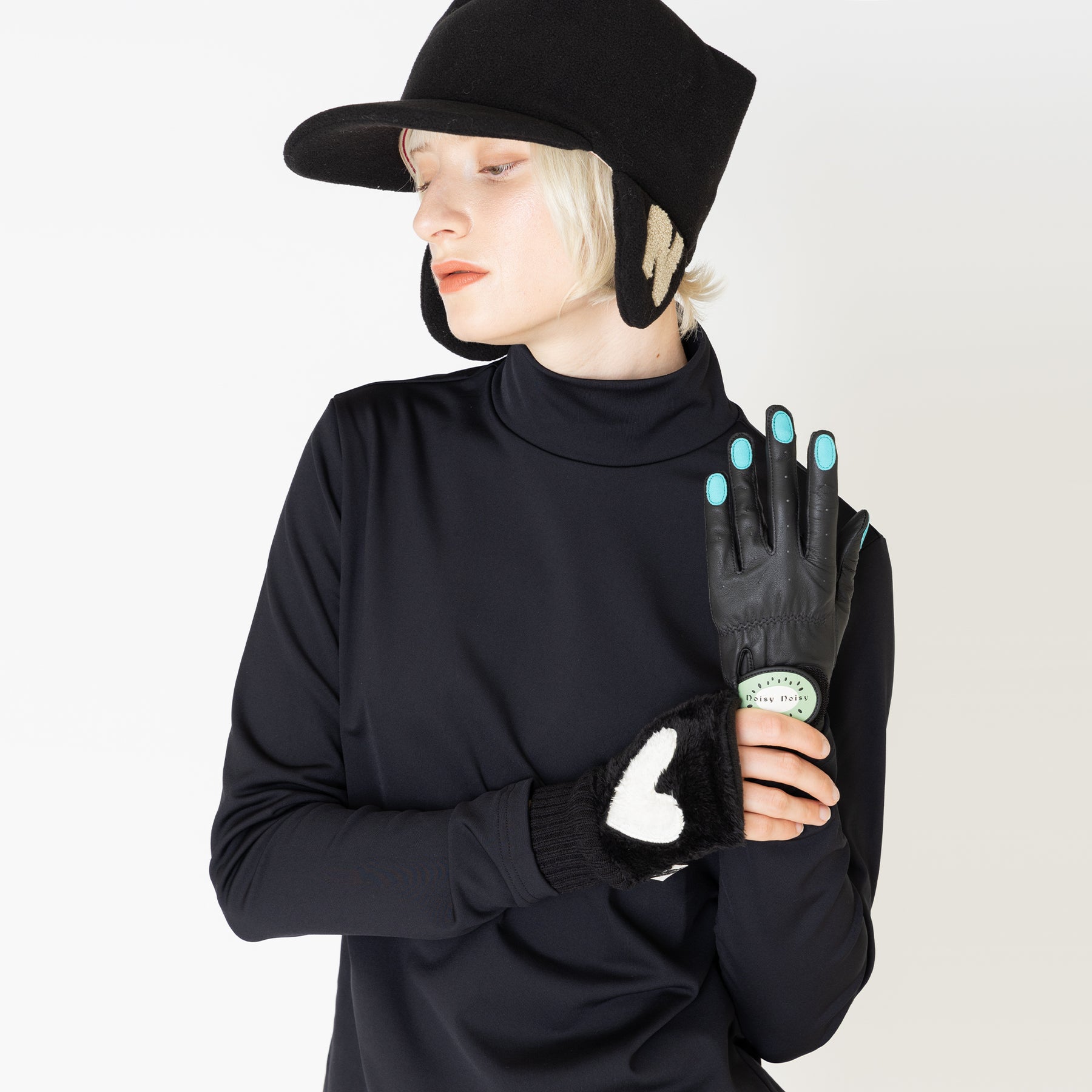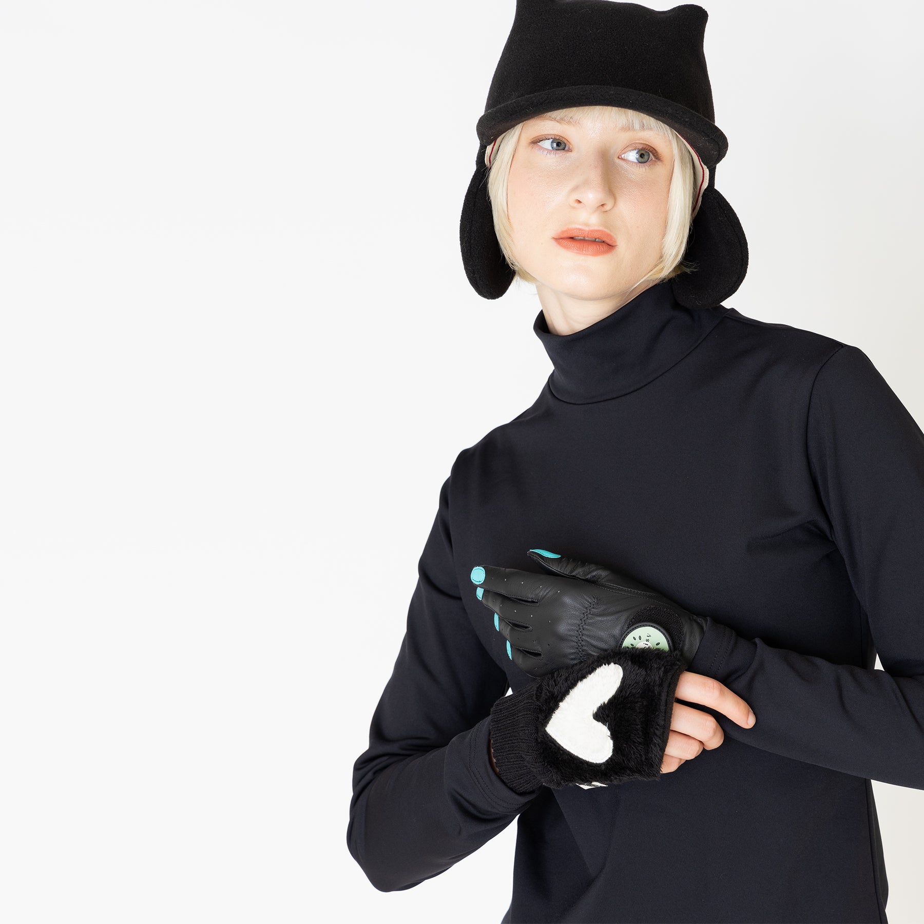 柔らかなレザーが手にフィットするグローブはマニュキアの爪がスタイリッシュです。