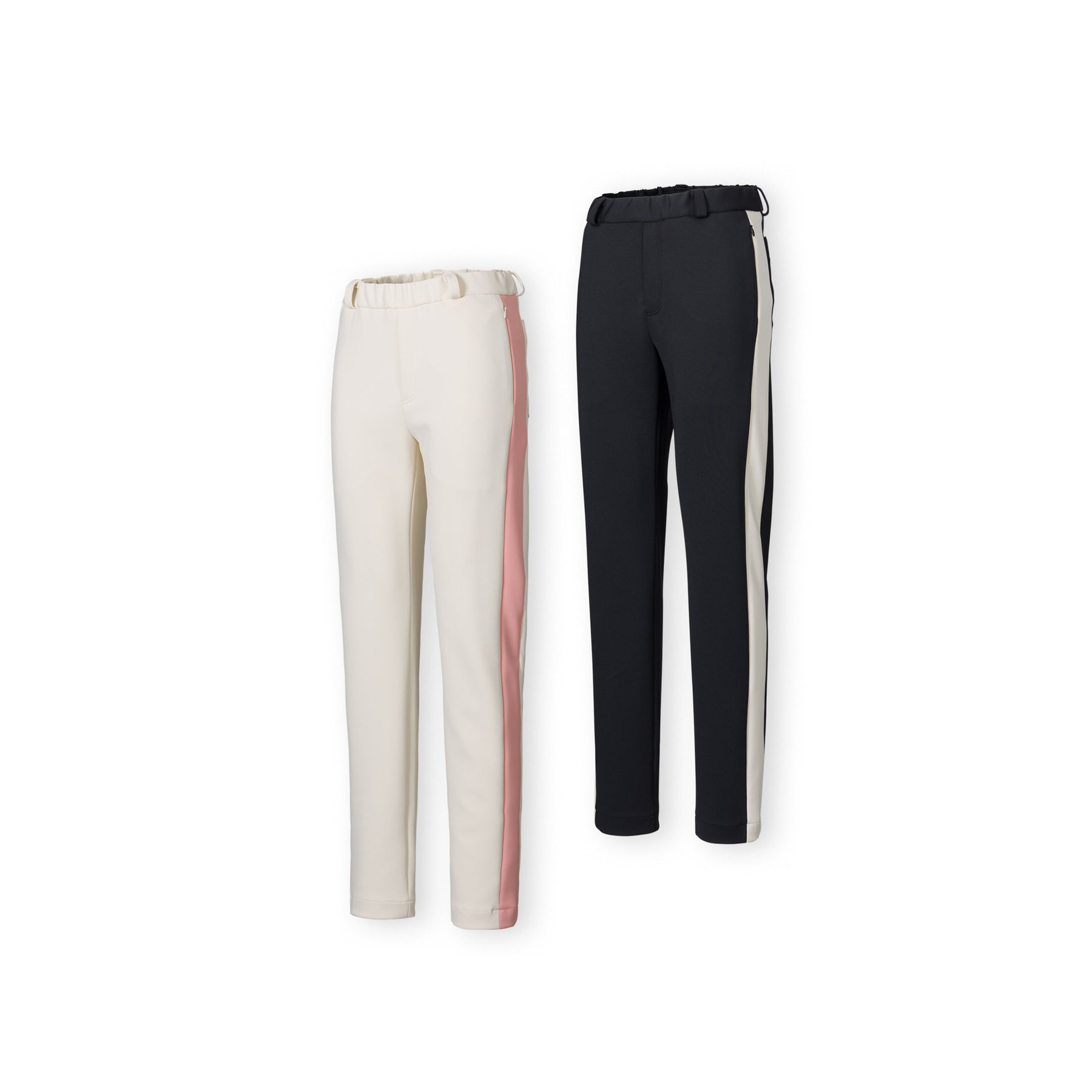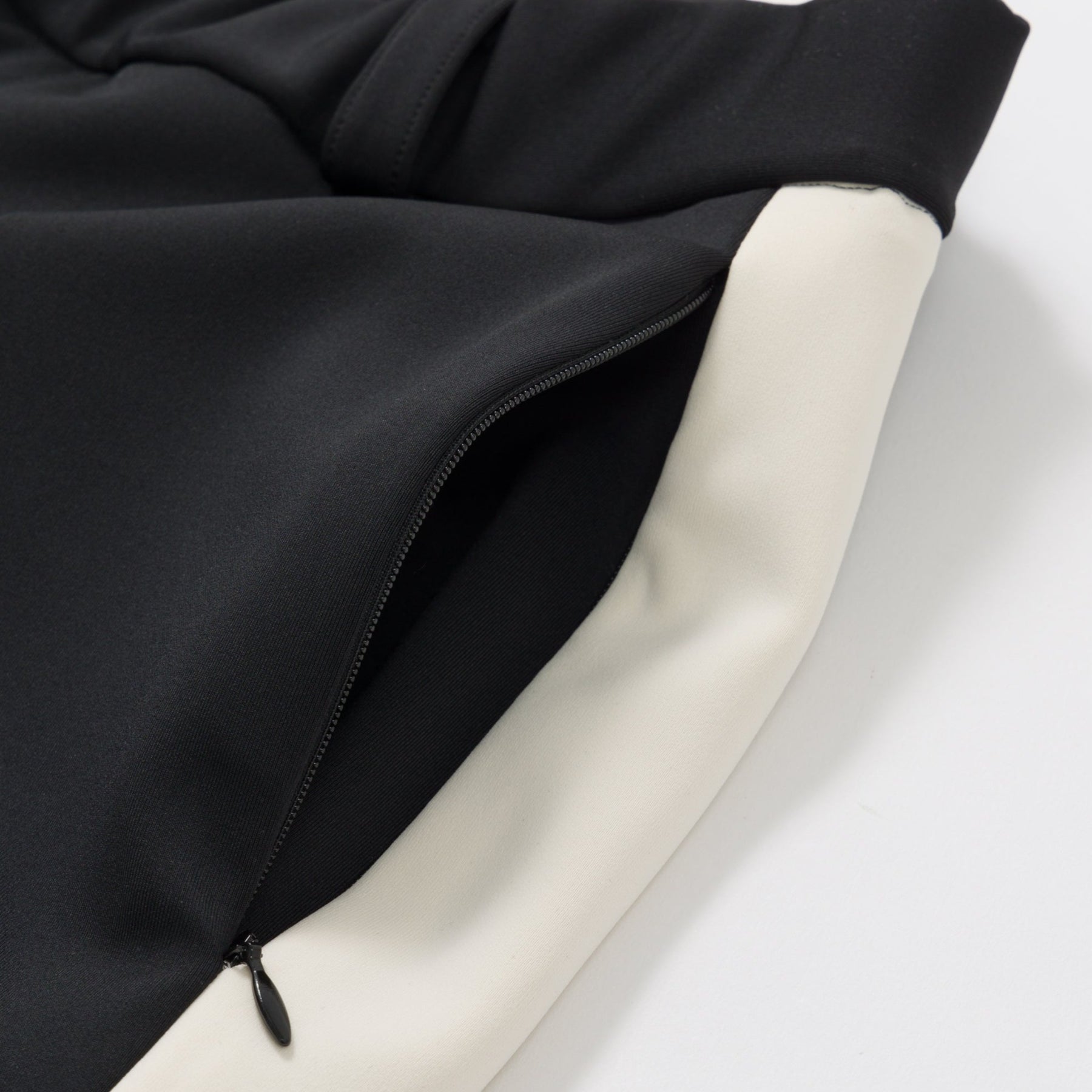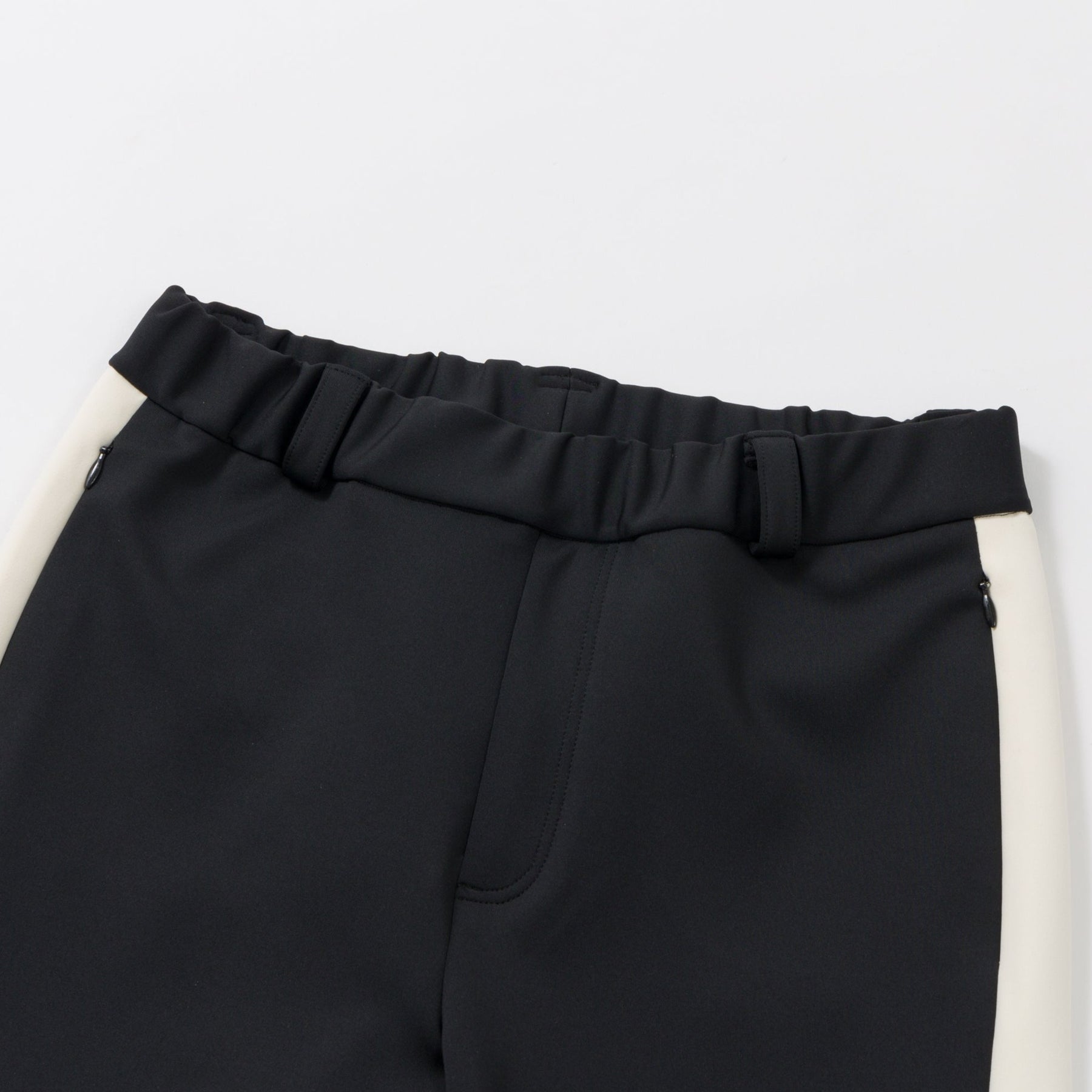 ウエストはゴムのみ、前ファスナーなし。