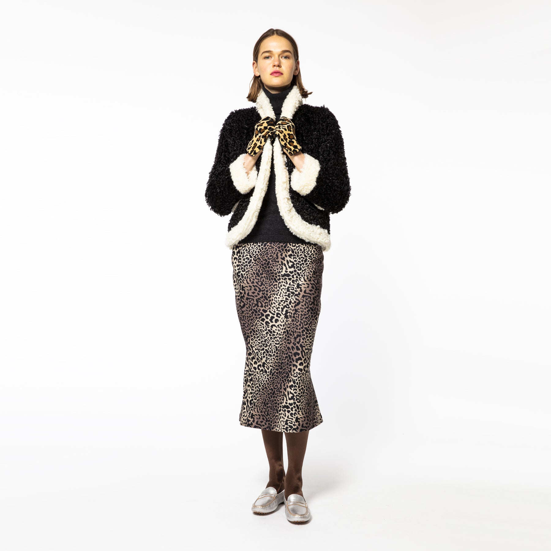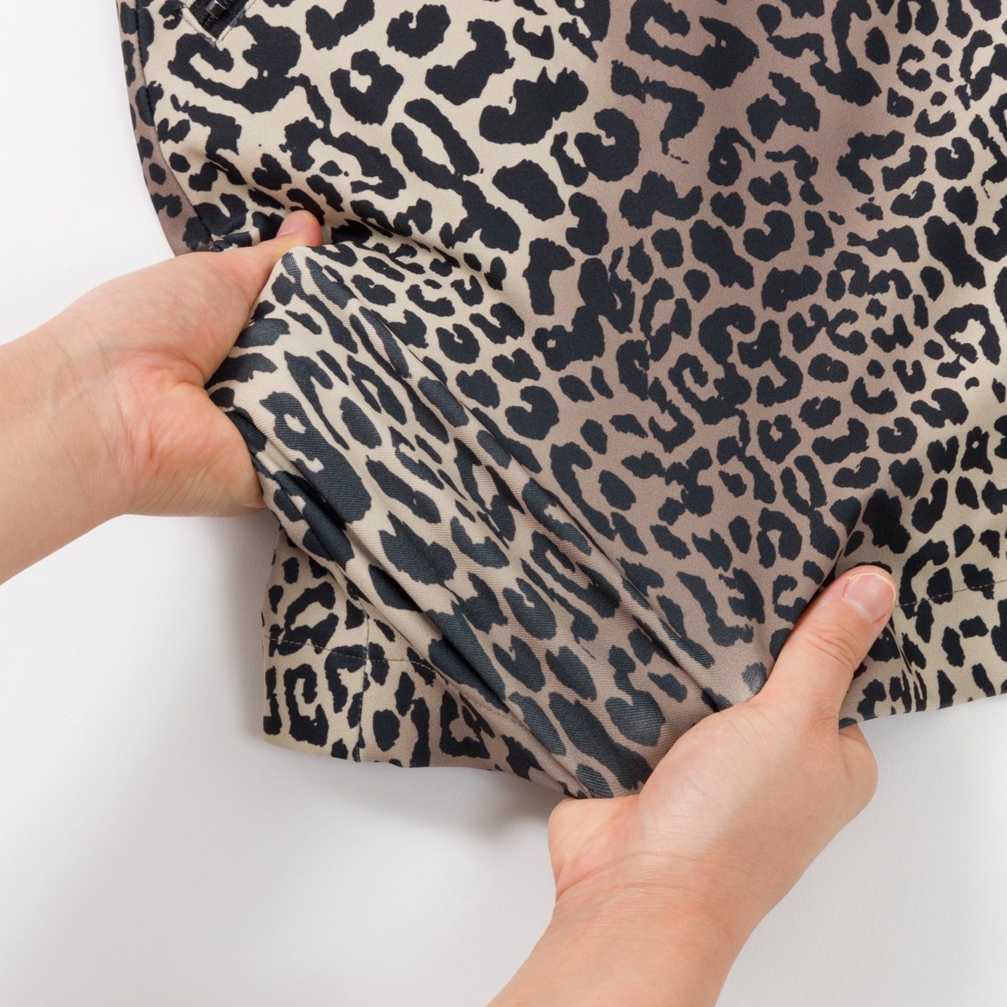エレガントな豹柄のセミフレアスカートはストレッチ素材で伸縮自在で履き心地満点です。