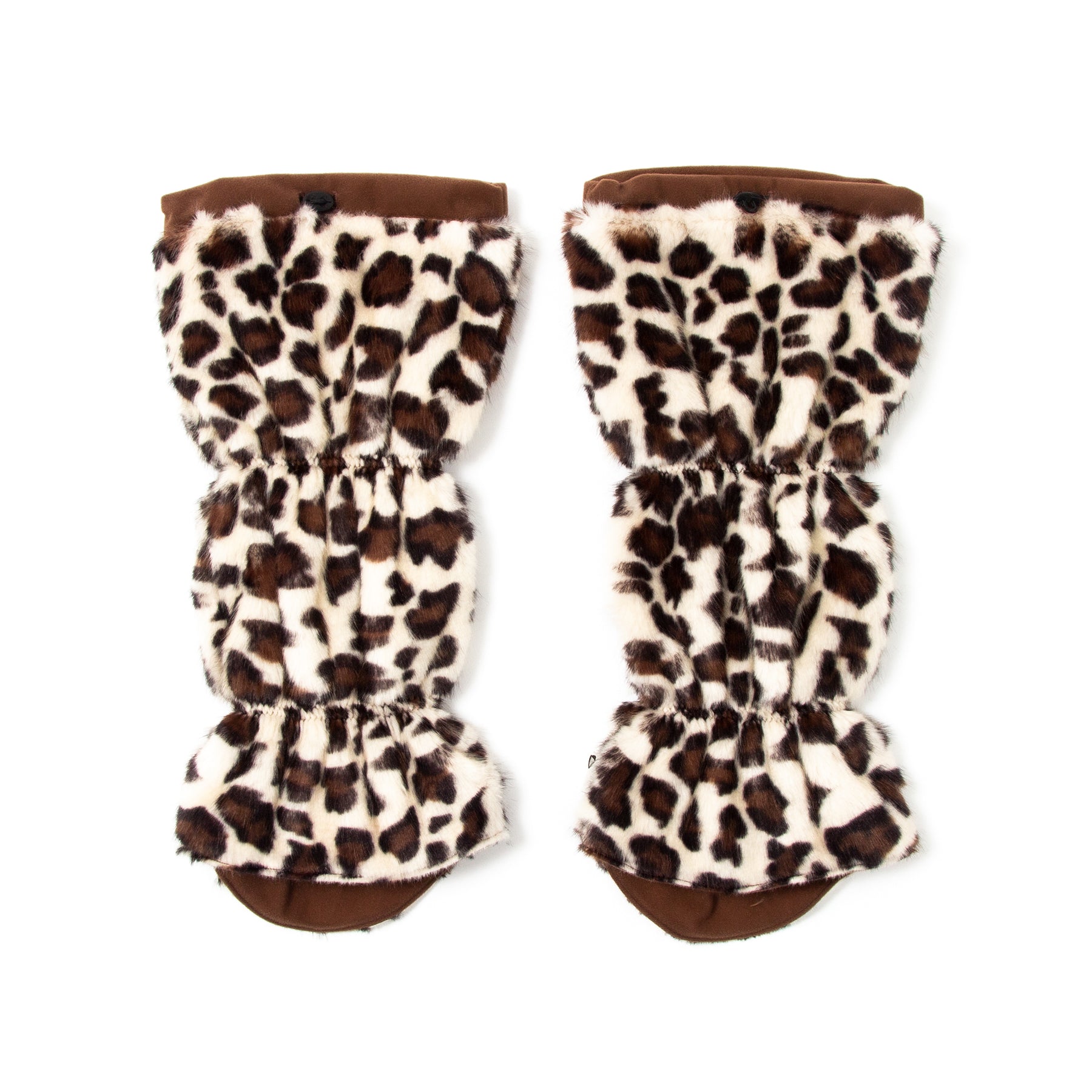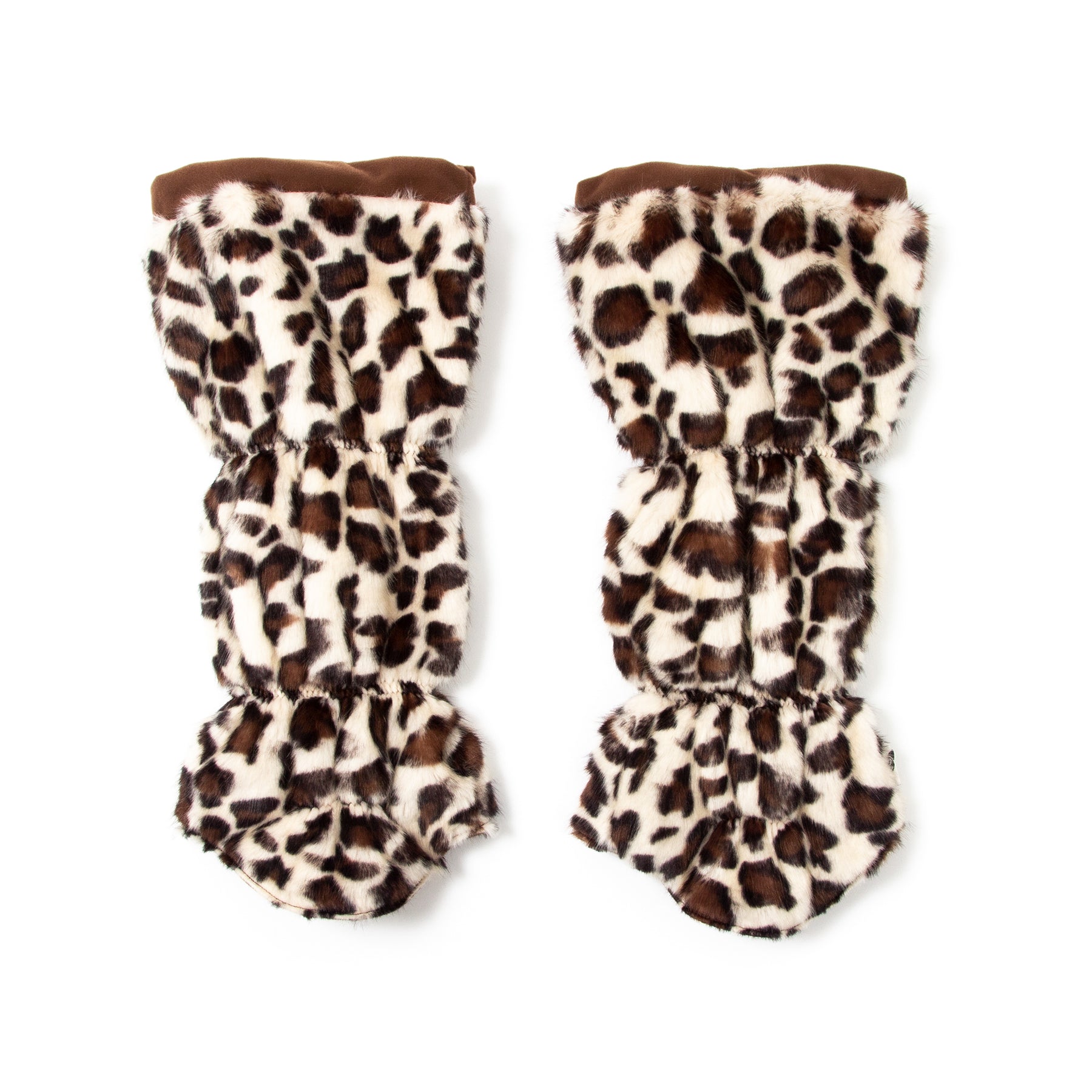 パンサープリントのボアに中側が蓄熱素材でとても暖かな個性的なレッグウォーマーです。